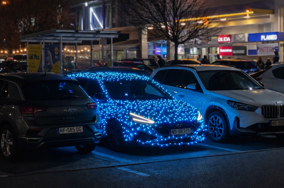 Auto je doslova obalené stovkami LED bodov, ktoré vytvárajú súvislý svetelný efekt po celej karosérii. Najvýraznejšie vyniká najmä po zotmení, keď jeho žiara kontrastuje s okolím parkoviska. Mnohí ľudia sa pri pohľade na vozidlo zastavujú, fotografujú si ho a svoje zábery následne zdieľajú na sociálnych sieťach.
